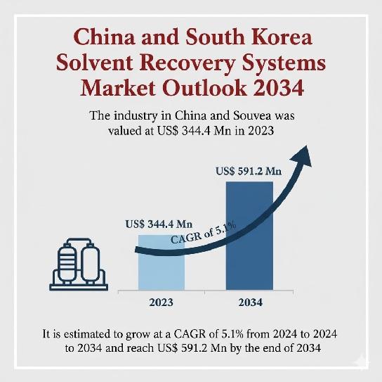 The solvent recovery systems market in China and South Korea is experiencing a period of steady expansion driven by rapid industrial growth, increasing environmental regulations, and rising corporate focus on sustainability. Valued at US$ 344.4 Mn in 2023, the combined market is projected to reach US$ 591.2 Mn by 2034, expanding at a CAGR of 5.1% from 2024 to 2034. As industries face mounting pressure to reduce solvent waste andโฆ