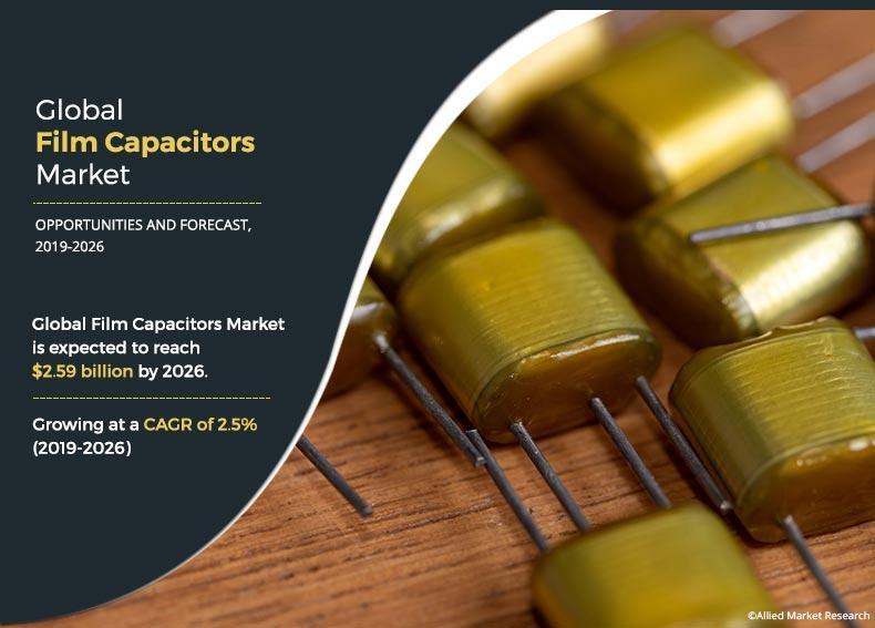 Allied Market Research published an exclusive report, titled, "Film Capacitor Market By Product (AC and DC), Type (Paper Film Capacitor and Plastic Film Capacitor) and Industry Vertical (Automotive, Power and Utilities, Consumer Electronics, Telecommunication, and Others): Global Opportunity Analysis and Industry Forecast, 2019-2026".The global film capacitor market size was valued at $2,125.0 million in 2018, and is projected to reach $2,589.1 million by 2026, growing at a CAGR of 2.5% from 2019 to 2026.