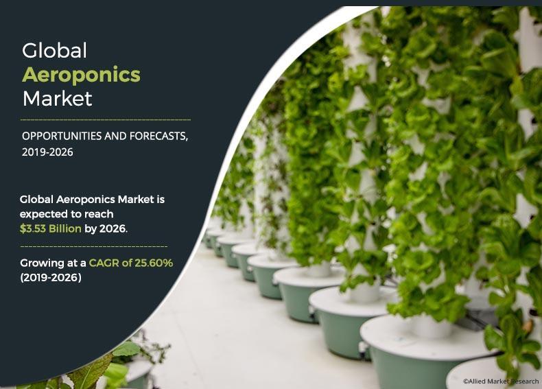 Allied Market Research published an exclusive report, titled, "Aeroponics Market By Application (Indoor Farming and Outdoor Farming) and Component (Irrigation Component, Lighting, Sensor, Climate Control, Building Material, and Others): Global Opportunity Analysis and Industry Forecast, 2019-2026".The global aeroponics market was valued at $578.70 million in 2018, and is projected to reach $3.53 billion by 2026, growing at a CAGR of 25.60% from 2019 to 2026.