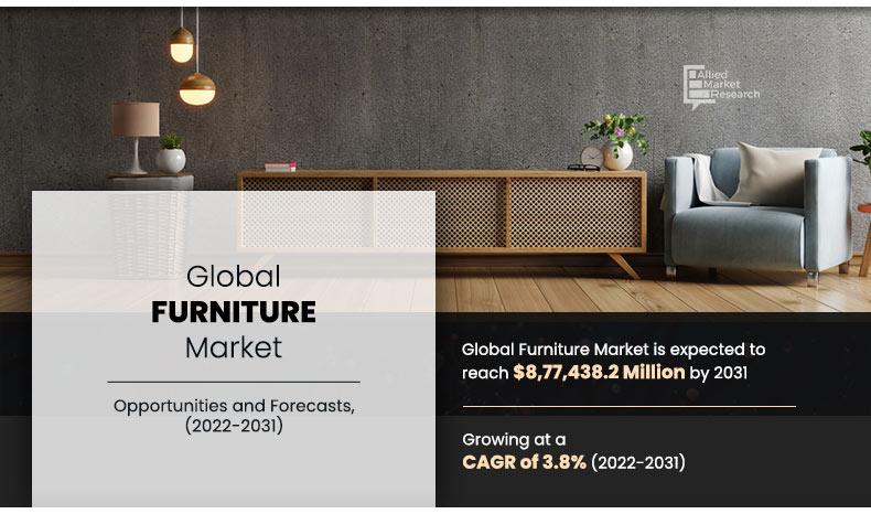 Allied Market Research projects a revenue boost in the furniture market, expected to surpass $8,77,438.20 million by 2031