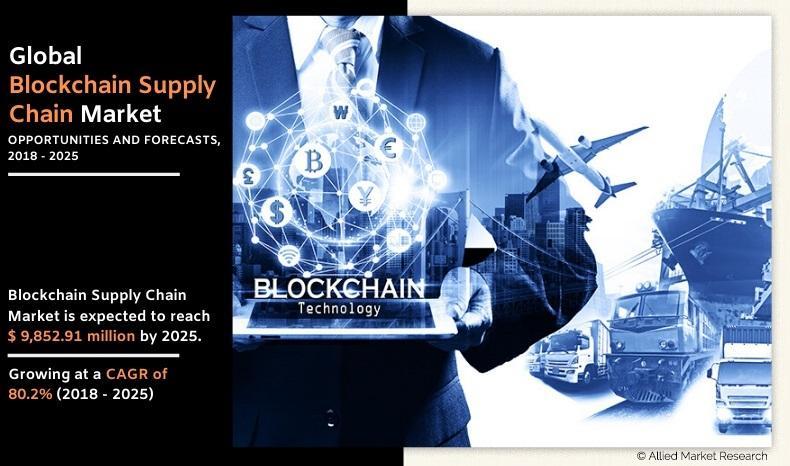 According to a recent report published by Allied Market Research, titled, "Blockchain Supply Chain Market by Component, Application, and Industry Vertical: Global Opportunity Analysis and Industry Forecast, 2018-2025," the global blockchain supply chain market size was valued at $93.16 Million in 2017 and is projected to reach $9,852.91 Million by 2025, growing at a CAGR of 80.2% from 2018 to 2025.Request Sample Report at: https://www.alliedmarketresearch.com/request-sample/5282