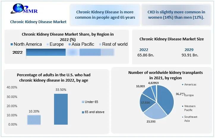 The Global Chronic Kidney Disease Market size reached USD 65.86 Bn in 2022 and is expected to reach USD 93.91 Bn by 2029, growing at a CAGR of 5.2 % during the forecast period.