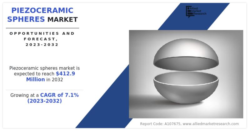 Allied Market Research published an exclusive report, titled, "Piezoceramic Spheres Market By Material Type (PZT (Lead-Zirconate-Titanate) and Others), Application (Underwater Devices, Data Communication, Ultrasonic Technology, and Others), Outer Diameter (2 to 35, 35 to 70, 70 to 100, and Custom): Global Opportunity Analysis and Industry Forecast, 2023-2032".The global piezoceramic spheres market was valued at $208.1 million in 2022, and is projected to reach $412.9 million by 2032, growing at a CAGR of 7.1% from 2023 to 2032.