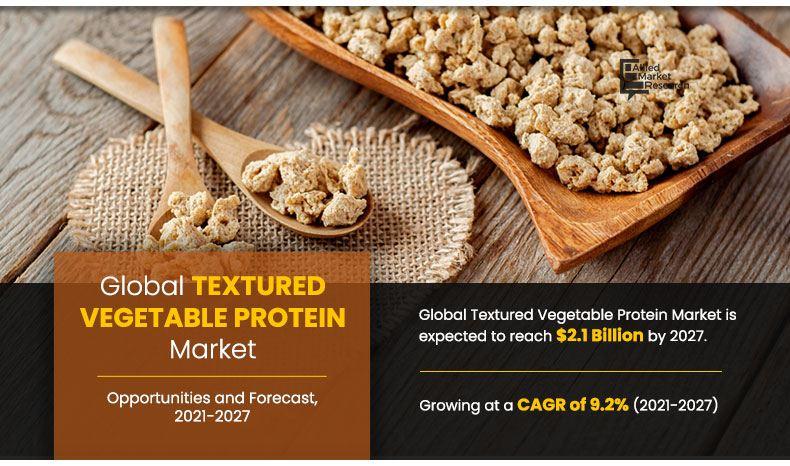 According to a new report published by Allied Market Research, titled "Textured Vegetable Protein Market by Product Type, Form, and End User: Global Opportunity Analysis and Industry Forecast, 2021-2027," The global textured vegetable protein market size was valued at $987.9 million in 2019 and is projected to reach $2,139.6 million by 2027, registering a CAGR of 9.2% from 2021 to 2027.โถ ๐๐๐ญ ๐ ๐ฎ๐ฅ๐ฅ ๐๐๐๐๐ฌ๐ฌ ๐ญ๐จ ๐๐๐ฆ๐ฉ๐ฅ๐ ๐๐จ๐ฉ๐ฒ : https://www.alliedmarketresearch.com/request-sample/11520
