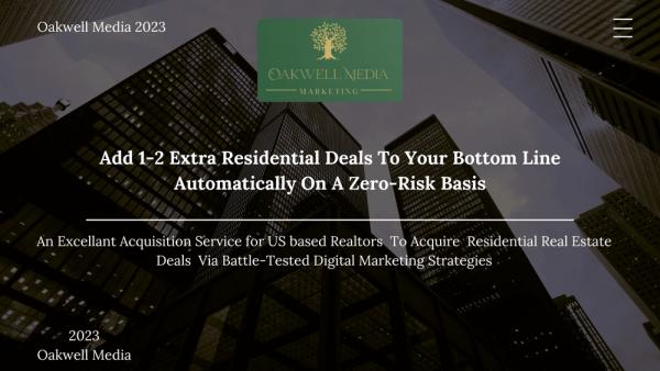 "We are excited to be able to offer a revolutionized service that helps our clients acquire listings from online leads in a way that is a divergence from most lead gen companies," says Sam Criddle, Founder of Oakwell Media. "Our platform is straightforward to use and provides qualified, high intent online leads, making it the perfect solution for any realtor looking to boost their GCI."