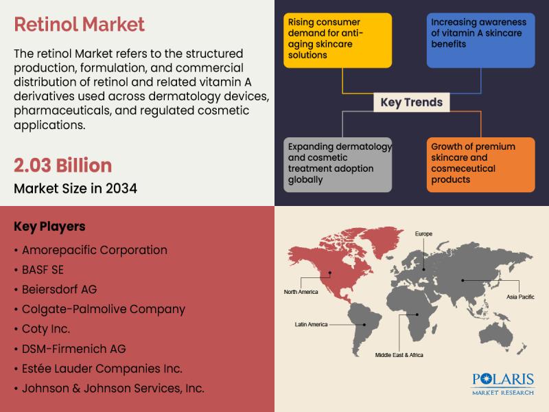 Polaris Market Research recently introduced the latest update on Retinol Market that provides an extensive outlook of the market, analyzing key growth opportunities, challenges, risk factors, and emerging trends across diverse geographic regions. The report offers a definitive and meticulous analysis of the Retinol Market size, share, demand, key growth factors, segmentation, country-level overview, and forecast.