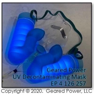 The decontaminating UV Mask kills viruses present in the exhaled breath of infected individuals wearing the mask, even if asymptomatic, thus preventing any transmission of the virus to the nearby population or environment."We took a Six Sigma approach to the risks of the pandemic, and our Root Cause Analysis showed that each person that is infected becomes a virus factory." said Gary Kellstrom, Jr., Geared Power CEO, "Our Preventative Action solution was to inactivate the virus from the exhaled breath of infected individuals." This technology and approach to design of this product is unlike any other, as evidenced by the recently granted European Patent.