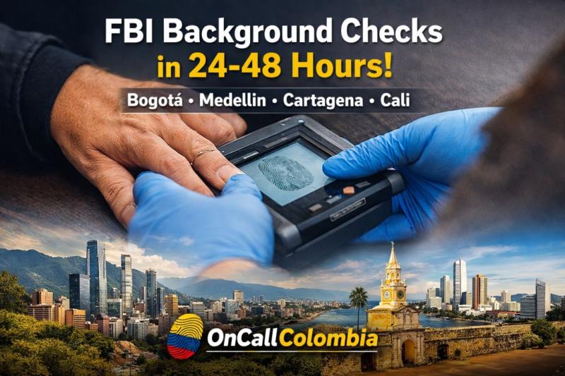 Medellin, Colombia - FBI background check services in Colombia have traditionally required applicants to wait weeks, travel long distances, or mail fingerprint cards internationally. OnCallColombia has expanded its expedited FBI background check services nationwide, now offering mobile fingerprinting appointments in Bogota, Medellin, Cartagena, and Cali, with results delivered in as little as 24 to 48…