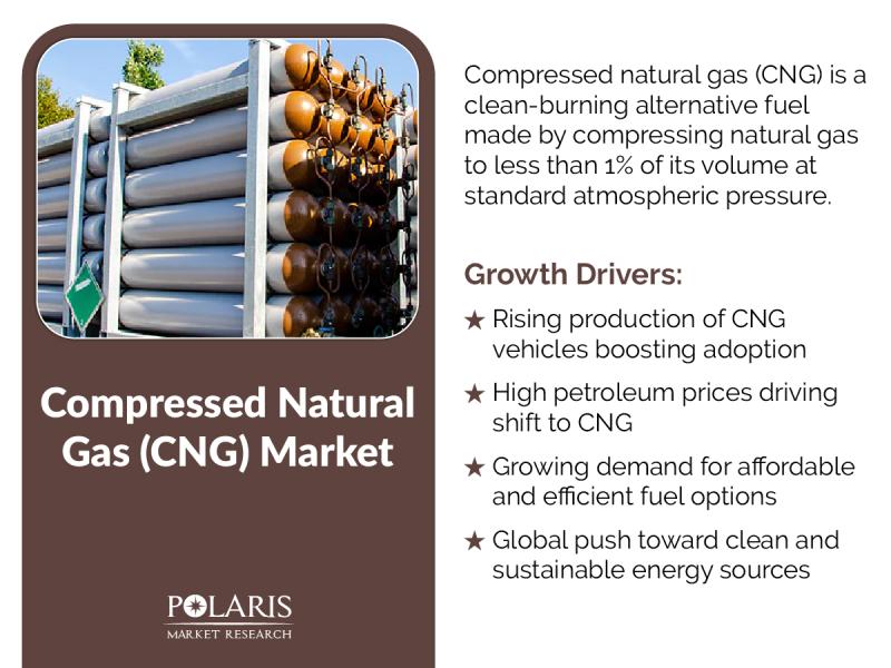 Polaris Market Research recently introduced the latest update on Compressed Natural Gas (CNG) Market that provides an extensive outlook of the market, analyzing key growth opportunities, challenges, risk factors, and emerging trends across diverse geographic regions. The report offers a definitive and meticulous analysis of the Compressed Natural Gas (CNG) market size, share, demand, key growth factors, segmentation, country-level overview, and forecast.