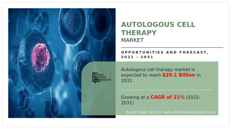 Allied Market Research has published a study report with the title Autologous Cell Therapy Market Size was Valued at USD 4.3 billion in 2021 and is Projected to hit USD 29.1 billion by 2031, registering a CAGR of 21.0% from 2022 to 2031. The report provides a detailed analysis of the top investment pockets, top winning strategies, drivers & opportunities, market size & estimations, competitive landscape, and evolving market trends.โฆ