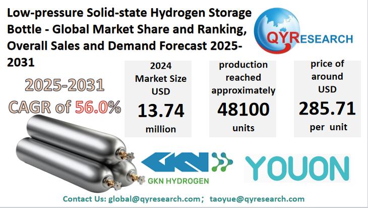 Global Leading Market Research Publisher QYResearch announces the release of its latest report "Low-pressure Solid-state Hydrogen Storage Bottle - Global Market Share and Ranking, Overall Sales and Demand Forecast…