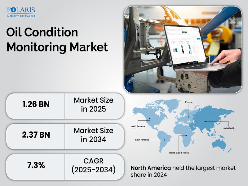 Oil Condition Monitoring Market is currently valued at USD 1.18 billion in 2024 and is anticipated to generate an estimated revenue of USD 2.37 billion by 2034, according to the latest study by Polaris Market Research. Besides, the report notes that the market exhibits a robust 7.3% Compound Annual Growth Rate (CAGR) over the forecasted timeframe, 2025 - 2034
