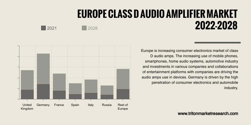 Read the Market Summary Here: https://www.tritonmarketresearch.com/reports/europe-class-d-audio-amplifier-market#report-overview?utm_source=PaidPRNew&utm_medium=OpenPR&utm_campaign=TritonPR