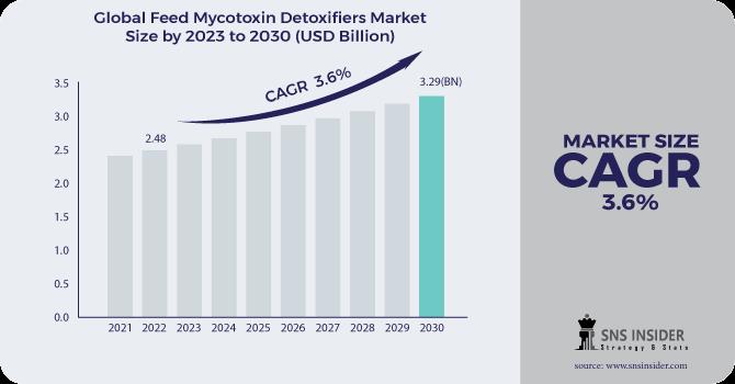 The market for feed mycotoxin detoxifiers is experiencing unprecedented growth, driven by a surge in attention towards animal health, a commitment to improving the quality of animal feeds, and an increasing demand for the safety and hygiene of animal products. Farmers are becoming more aware of the benefits of incorporating mycotoxin detoxifiers as feed additives, reflecting a global trend in the expansion of the livestock sector.According to the latest SNS Insider report, the Feed Mycotoxin Detoxifiers Market was valued at USD 2.48 billion in 2022 and is projected to reach USD 3.29 billion by 2030, exhibiting a CAGR of 3.6% during the forecast period from 2023 to 2030.The feed mycotoxin detoxifiers market is witnessing robust growth driven by the increasing awareness of mycotoxin contamination in animal feed and the rising demand for safe and high-quality feed ingredients to ensure animal health and productivity. Mycotoxins are toxic secondary metabolites produced by molds that can contaminate grains, cereals, and other feed ingredients, posing significant health risks to livestock, poultry, and aquaculture species. As a result, feed manufacturers and livestock producers are increasingly adopting mycotoxin detoxifiers as an integral component of feed formulations to mitigate the adverse effects of mycotoxin exposure on animal performance and welfare.