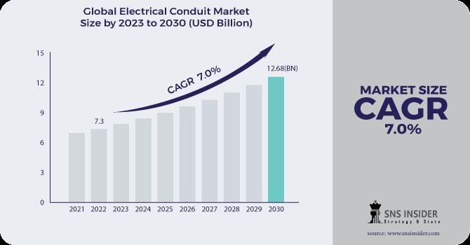 Increasing awareness of safety, rapid industrialization, and urbanization drive the robust growth of the Electrical Conduit Market.According to the latest SNS Insider report, the Electrical Conduit Market Size was valued at USD 7.3 billion in 2022 and is expected to reach USD 12.68 billion by 2030, boasting a commendable CAGR of 7.0% during the forecast period 2023-2030.The electrical conduit market is witnessing steady growth driven by the expanding construction sector, rapid urbanization, and increasing infrastructural development projects worldwide. Electrical conduits play a vital role in protecting and routing electrical wiring in buildings, ensuring safety, and complying with building codes and regulations. With the growing demand for electricity in residential, commercial, and industrial applications, the need for reliable and efficient electrical conduit systems is escalating, propelling market growth.