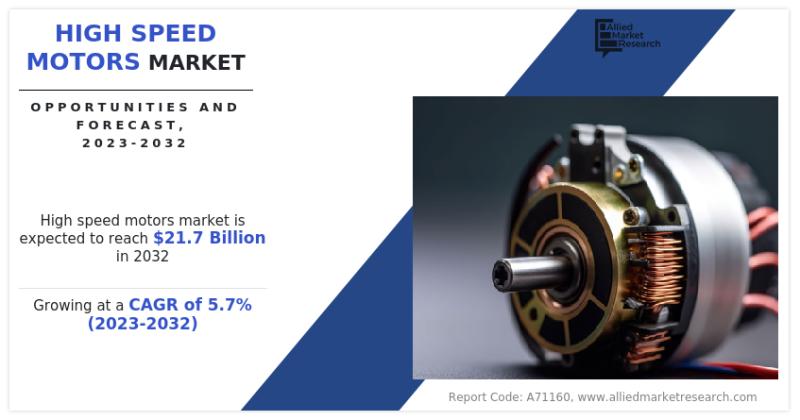 According to a new report published by Allied Market Research, the high speed motors market size was valued at $12.6 billion in 2022 and is projected to reach $21.7 billion by 2032, growing at a CAGR of 5.7% from 2023 to 2032. The market is witnessing consistent growth due to rising demand for compact, energy-efficient, and high-performance motors across industries such as manufacturing, aerospace, automotive, healthcare, and power generation.