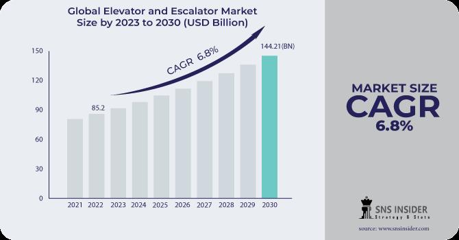 The Elevator and Escalator Market size was estimated at USD 85.2 billion in 2022 and is expected to reach USD 144.21 billion by 2030 at a CAGR of 6.8% during the forecast period of 2023-2030.The Elevator and Escalator market, integral to modern urban infrastructure, is experiencing robust growth driven by rapid urbanization, demographic shifts, and technological advancements. This press release delves into the dynamic landscape of the Elevator and Escalator market, spotlighting key trends, innovations, and market dynamics shaping its trajectory. From smart elevators to energy-efficient escalators, discover how these vertical transportation solutions are facilitating seamless mobility in the world's bustling urban centers.