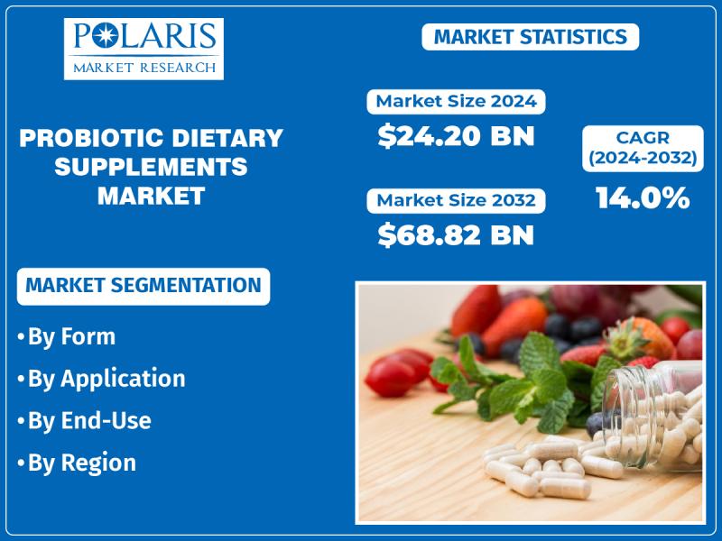 Probiotics Dietary Supplements Market is expected to reach US$ 68.82 Billion by 2032, exhibiting a CAGR of 14.0%