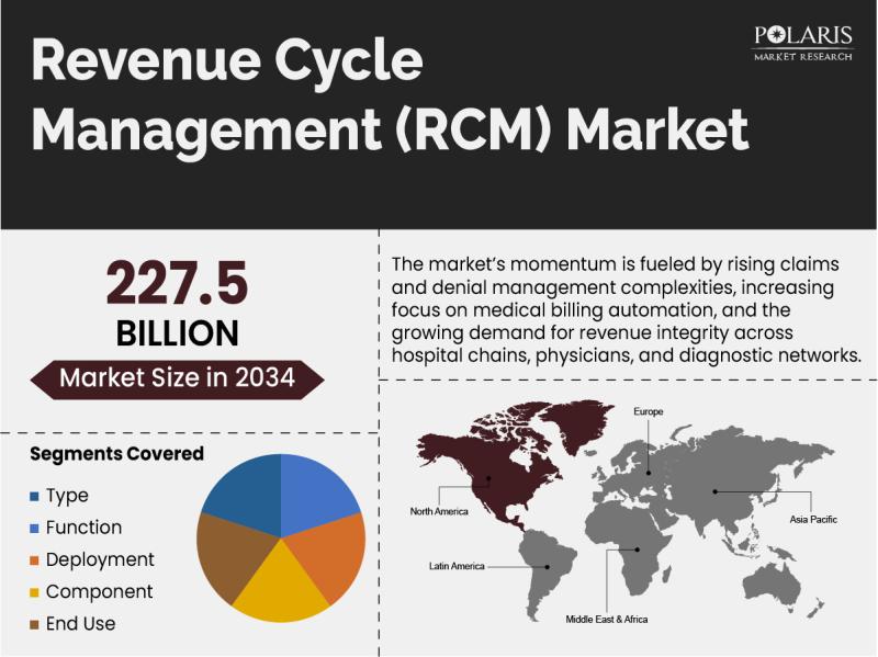 Polaris Market Research recently introduced the latest update on Revenue Cycle Management Market that provides an extensive outlook of the market, analyzing key growth opportunities, challenges, risk factors, and emerging trends across diverse geographic regions. The report offers a definitive and meticulous analysis of the Revenue Cycle Management Market size, share, demand, key growth factors, segmentation, country-level overview, and forecast.