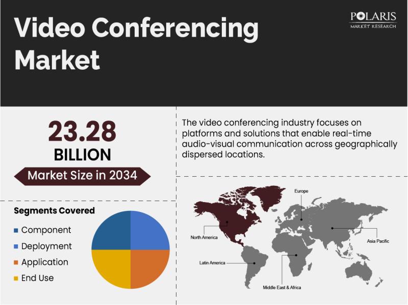 Global Video Conferencing Market is currently valued at USD 12.30 billion in 2025 and is anticipated to generate an estimated revenue of USD 23.28 billion by 2034, according to the latest study by Polaris Market Research. Besides, the report notes that the market exhibits a robust 7.35% Compound Annual Growth Rate (CAGR) over the forecasted timeframe, 2026 - 2034