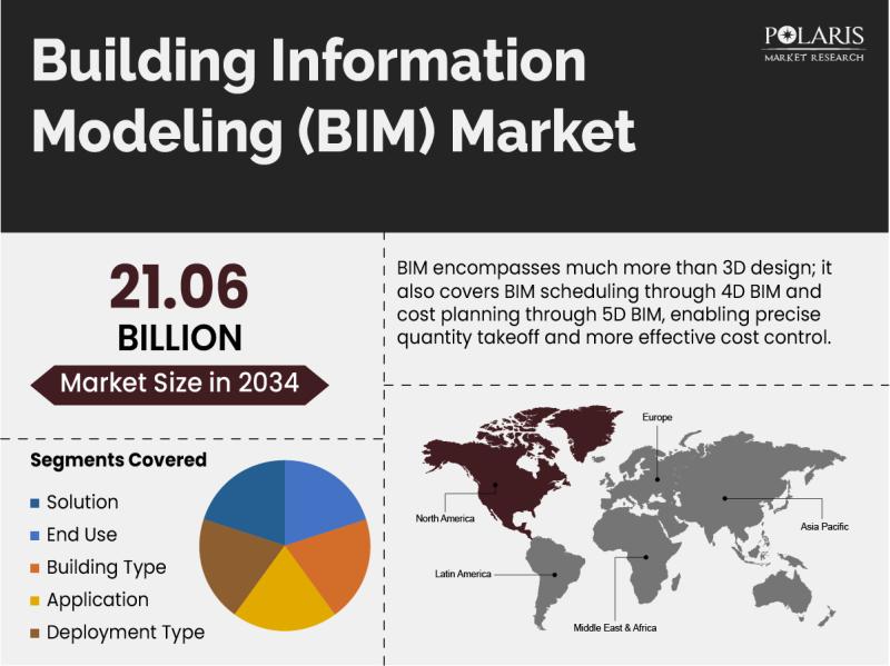 Polaris Market Research recently introduced the latest update on Building Information Modeling Market that provides an extensive outlook of the market, analyzing key growth opportunities, challenges, risk factors, and emerging trends across diverse geographic regions. The report offers a definitive and meticulous analysis of the Building Information Modeling Market size, share, demand, key growth factors, segmentation, country-level overview, and forecast.