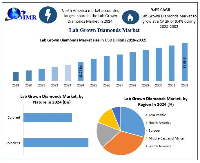 According to a new report by Maximize Market Research, the global Lab Grown Diamonds Market was valued at USD 28.24 Billion in 2024 and is projected to reach USD 57.95 Billion by 2032, growing at a CAGR of 9.4%. The market expansion is fueled by increasing consumer preference for sustainable, affordable alternatives to natural diamonds and technological innovations in manufacturing.