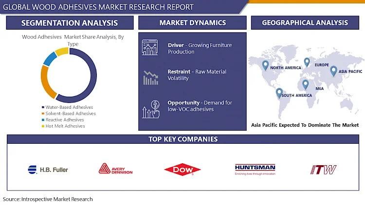 The wood adhesives market is shaped by various dynamic forces and factors. Firstly, it is intricately linked to the trends in the construction industry, particularly in the production of engineered wood products like plywood and particleboard. The demand for wood adhesives also stems from the furniture manufacturing sector, where these adhesives are crucial for assembling wooden components. Additionally, environmental regulations play a significant role, driving the need for eco-friendly and low-VOC adhesives. Technological advancements, such as water-based and bio-based adhesives, are impacting market dynamics by offering improved performance and meeting regulatory standards. Raw material availability and pricing, competitive pressures, end-user preferences, and global economic conditions further influence the wood adhesives market, requiring stakeholders to navigate these factors strategically for sustainable growth.