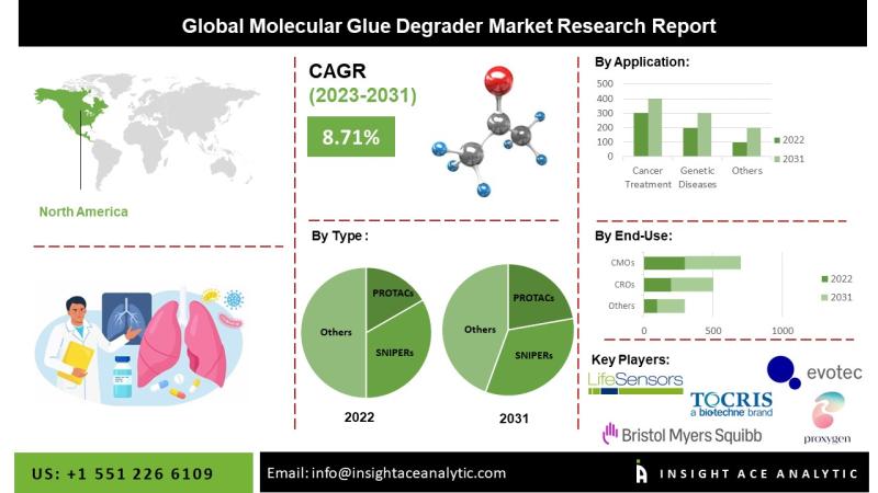 InsightAce Analytic Pvt. Ltd. announces the release of a market assessment report on the "Global Molecular Glue Degrader Market Size, Share & Trends Analysis Report By Type (PROteolysis Targeting Chimeras (PROTACs), Specific and Non-genetic IAP-dependent Protein ERasers (SNIPERs), Target ORiented ProtEin Degrader Optimizer (TORPEDO), Lysosomal Targeting Chimeras (LYTACs)), Application (Cancer Treatment, Infectious Diseases, Genetic Diseases) And End Users (Pharmaceutical And Healthcare Companies, Contract Research Organizations (CROs), and Contract Manufacturing Organizations (CMOs))- Market Outlook And Industry Analysis 2031"Request for Sample Pages: https://www.insightaceanalytic.com/request-sample/1813