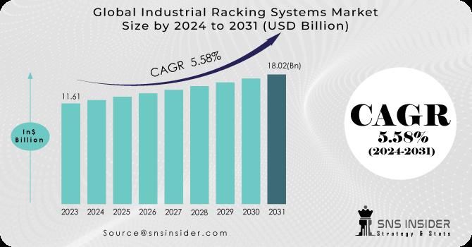 The Industrial Racking Systems Market size was estimated at USD 11.61 Billion in 2023 and is expected to reach USD 18.02 Billion by 2031 at a CAGR of 5.58 % during the forecast period of 2024-2031.