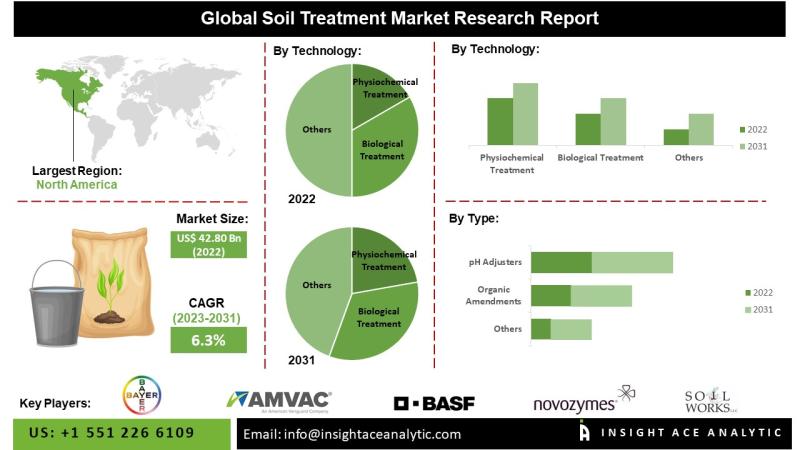 Soil Treatment Market to reach over USD 72.96 billion by the year 2031 - Exclusive Report by InsightAce AnalyticInsightAce Analytic Pvt. Ltd. announces the release of a market assessment report on the "Global Soil Treatment Market Size, Share & Trends Analysis Report By Technology (Physiochemical Treatment, Biological Treatment, Thermal Treatment), By Type (Organic Amendments, pH Adjusters, Soil Protection), Region, Market Outlook And Industry Analysis 2031"