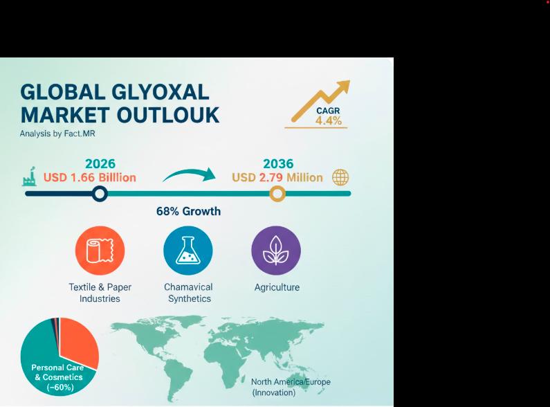 The global glyoxal market is entering a decade of transformative growth, driven by an industrial pivot toward low-formaldehyde alternatives and the expansion of high-performance textile and packaging sectors. According to recent industry analysis, the market-valued at approximately $370 million in 2025-is projected to climb at a steady Compound Annual Growth Rate (CAGR) of 5.8%, potentially reaching $1.2 billion by 2036.
