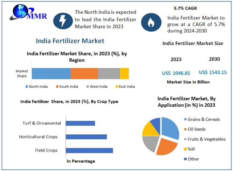 India Fertilizer Market Demand Will Reach a Value of USD 1543.15 billion by the Year 2030, At a CAGR of 5.7%