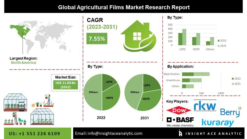 Agricultural Films Market to reach over USD 22.49 billion by the year 2031 - Exclusive Report by InsightAce AnalyticInsightAce Analytic Pvt. Ltd. announces the release of a market assessment report on the "Global Agricultural Films Market Size, Share & Trends Analysis Report By product type (LLDPE, LLDP, reclaim, EVA, HDPE) and end-use application (Greenhouse films, classic greenhouse, macro tunnel, low tunnel, mulch films, clear films, black mulches)- Market Outlook And Industry Analysis 2024-2031"