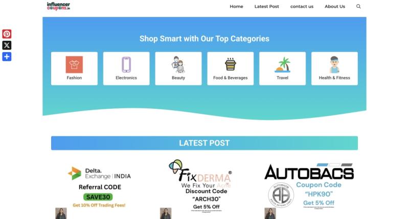 InfluencerCoupons.in introduces a verified coupon and promo code platform designed to help online shoppers save across top categories like fashion, electronics, beauty, food, travel, and fitness. Featuring influencer-tested deals and daily updates, every coupon on the site is guaranteed to work offering real discounts and reliable savings. Explore active coupon codes and trending offers at InfluencerCoupons.in .