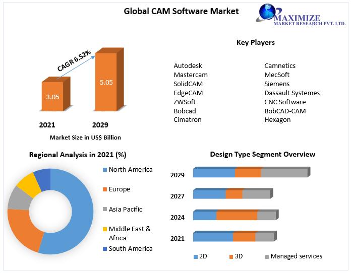 CAM Software Market was valued at US$ 5.05 Bn. in 2029. Global CAM Software Market size is estimated to grow at a CAGR of 6.52 %.CAM Software Market Overview