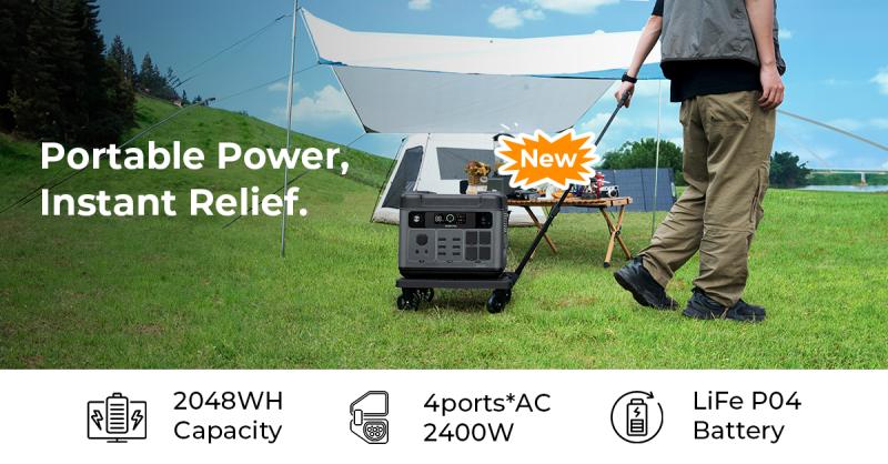- High Power Output: 2400W AC output with 4800W surge capability, ensuring stable power for demanding devices.
