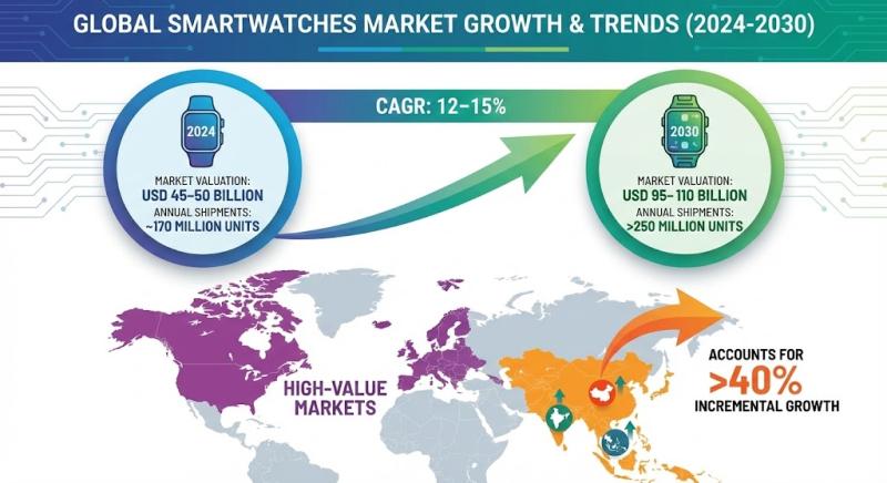 The global smartwatches market is entering a transformative growth phase, driven by health-focused innovation, ecosystem integration, and rising consumer adoption across both mature and emerging markets. Smartwatches are evolving from smartphone accessories into independent platforms for health, lifestyle, and productivity, creating new opportunities for manufacturers, software providers, and healthcare stakeholders.