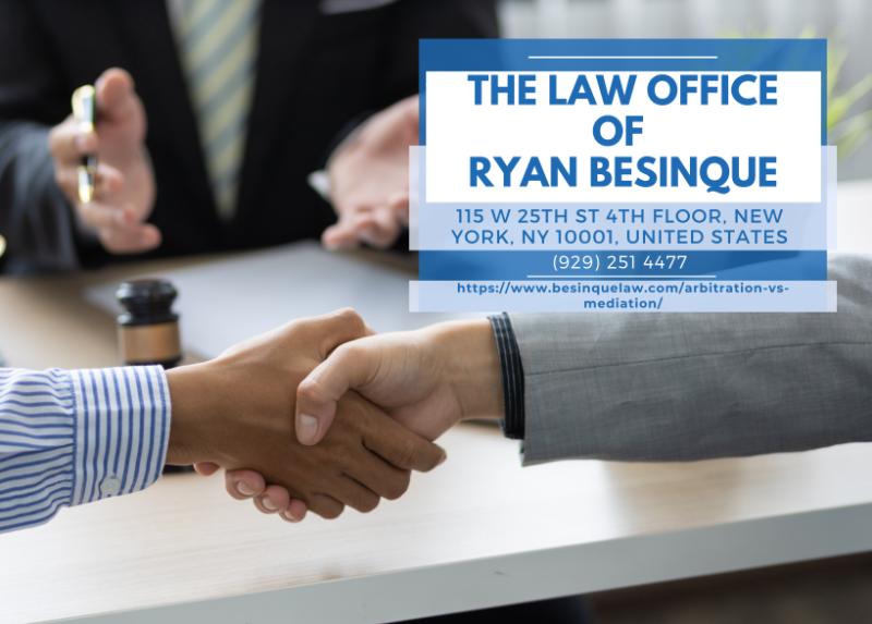 New York City divorce mediation lawyer Ryan Besinque (https://www.besinquelaw.com/arbitration-vs-mediation/) of The Law Office of Ryan Besinque has recently published an insightful article exploring the differences between arbitration and mediation in the context of divorce proceedings. The article comes at a time when more couples are seeking alternatives to traditional litigation, aiming for more amicable and efficient resolutions to marital disputes.In his article, the New York City divorce mediation lawyer offers a detailed comparison of arbitration and mediation, two key forms of alternative dispute resolution (ADR). Besinque explains that while both methods offer distinct advantages over conventional court battles, they serve different needs and can significantly influence the outcome of divorce proceedings.