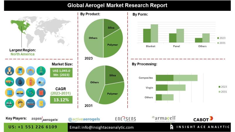 Aerogel Market to reach over USD 1955.26 million by the year 2031- Exclusive Report by InsightAce AnalyticInsightAce Analytic Pvt. Ltd. announces the release of a market assessment report on the "Global Aerogel Market Size, Share & Trends Analysis Report By Product Silica, Ploymer, Carbon, and Others (Metal, Metal Oxide, Metal Chalcogenides), Form (Blanket, Panel, Particle, and Monolith),By Processing (Virgin, Composites, Additives), By Application (Oil & Gas, Construction,