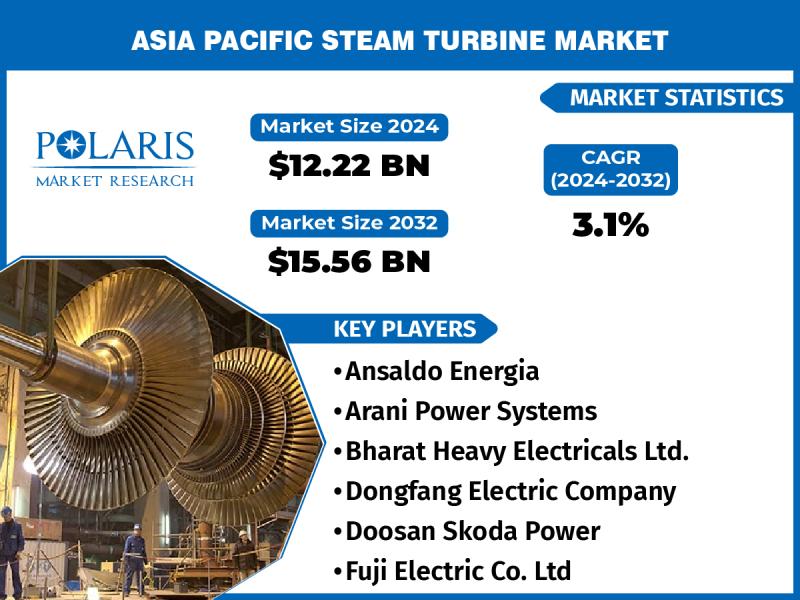 You can edit or delete your press release Asia Pacific Steam Turbine Market to Grow at 3.1% CAGR, Projected to Reach Nearly USD 15.56 Billion by 2032 | Kawasaki Heavy Industries, Man Diesel & Turbo SE here