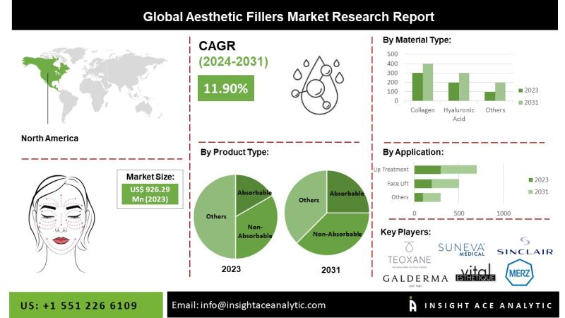 Aesthetic Fillers Market to reach over USD 2,254.01 Mn by the year 2031 - Exclusive Report by InsightAce Analytic"Aesthetic Fillers Market" in terms of revenue was estimated to be worth $926.29 Mn in 2023 and is poised to reach $2,254.01 Mn by 2031, growing at a CAGR of 11.90% from 2024 to 2031 according to a new report by InsightAce Analytic.