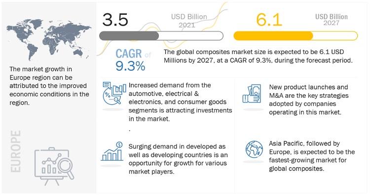 In terms of value, the Long fiber thermoplastics market [https://www.marketsandmarkets.com/Market-Reports/long-fiber-thermoplastic-market-143452466.html] is projected to register a CAGR of 9.3% during the forecast period, owing to the high demand from various end use industries worldwide. It was USD 3.5 billion in 2021 and is projected to reach USD 6.1 billion by 2027. This high growth can be attributed to an increase in demand for long fiber thermoplastics from automotive and electrical & electronics end use industries. In 2021, Europe dominated the market with the presence of major market players, such as Lanxess AG (Germany) and Solvay SA (Belgium).