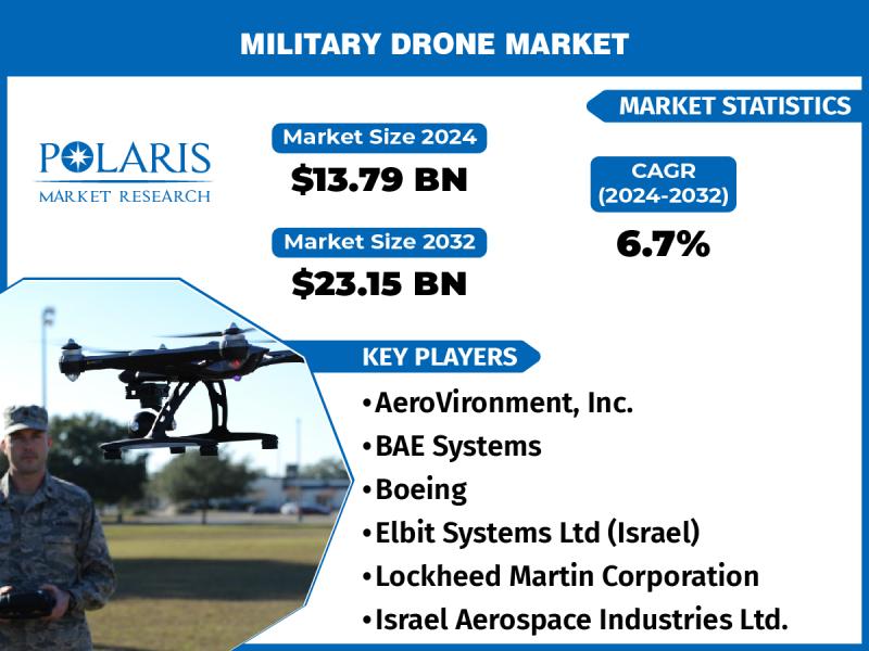 You can edit or delete your press release Military Drone Market Size & Industry Growth Analysis is Expected To Reach USD 23.15 Billion By 2032, at a CAGR of 6.7% | PMR here