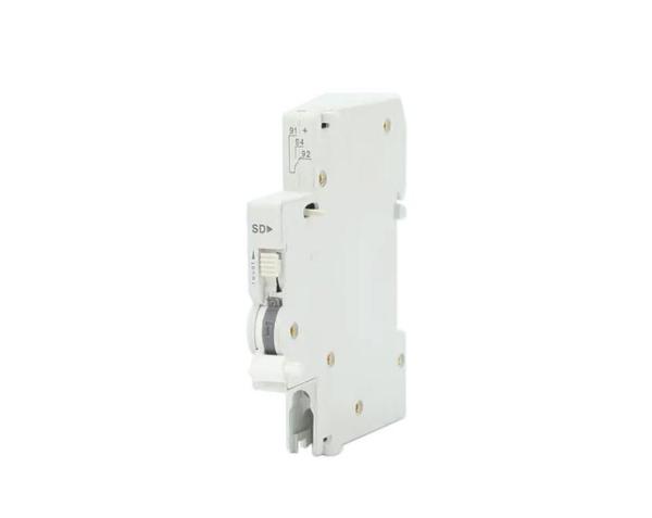 The JCSD Alarm Auxiliary Contact features a single changeover contact (1 C/O) configuration. This means that when the associated circuit breaker or RCBO trips due to a fault condition, the contact inside the auxiliary contact changes its position. This change in position allows the auxiliary contact to send a signal or indication to a remote monitoring system or alarm circuit, alerting the user or operator about the fault condition. The changeover contact design provides flexibility in wiring and integration with different types of monitoring systems or alarm circuits, enabling customization based on the specific requirements of the installation.