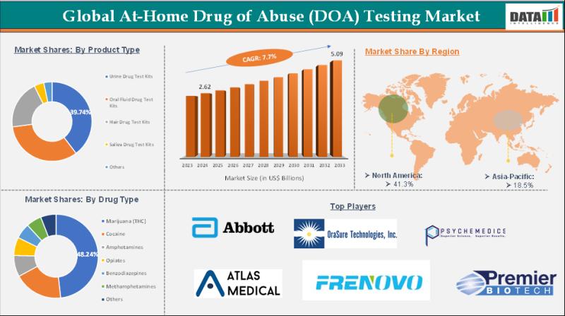 The At-Home Drug of Abuse (DOA) Testing Market Size reached US$ 2.62 Billion in 2024 and is expected to reach US$ 5.09 Billion by 2033, growing at a CAGR of 7.7% during the forecast period 2025-2033.