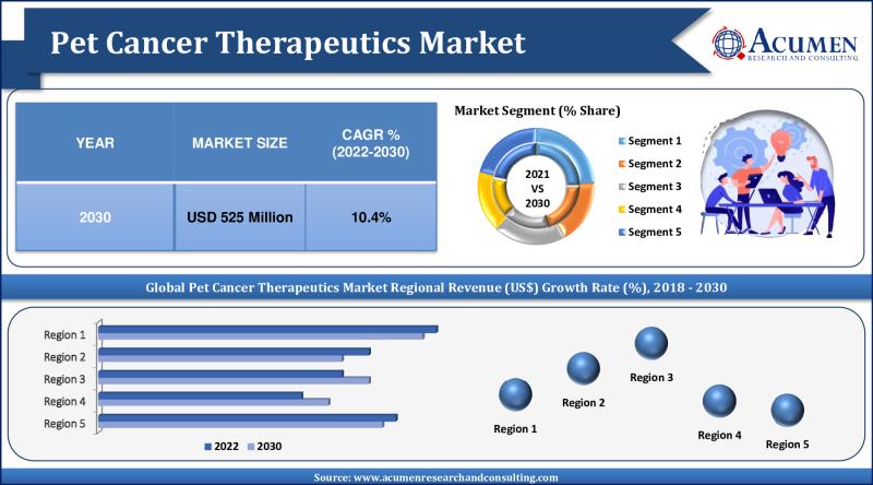 https://www.globenewswire.com/news-release/2022/11/28/2563367/0/en/Pet-Cancer-Therapeutics-Market-Size-is-expected-to-reach-at-USD-525-Million-by-2030-registering-a-CAGR-of-10-4-Owing-to-Rising-Prevalence-of-Pet-Cancer.html