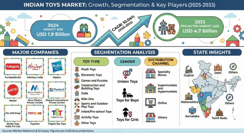 Indian Toys Market 2025-2033 According to IMARC Group's report titled "Indian Toys Market Size, Share, Trends and Forecast by Toy Type, Gender, Distribution Channel, and State, 2025-2033", this report examines the strategic outlook of the India toys market through an in-depth assessment of growth drivers, demand volatility patterns, and competitive positioning through 2033. It outlines the structural forces shaping market behaviour and supports decision-makers in evaluating investment priorities, portfolio risks, andโ€ฆ