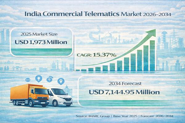 According to IMARC Group's report titled "India Commercial Telematics Market Size, Share, Trends and Forecast by Type, System Type, Provider Type, End Use Industry, and Region, 2026-2034" the report offers a comprehensive analysis of the industry, including market share, growth, trends, and regional insights.