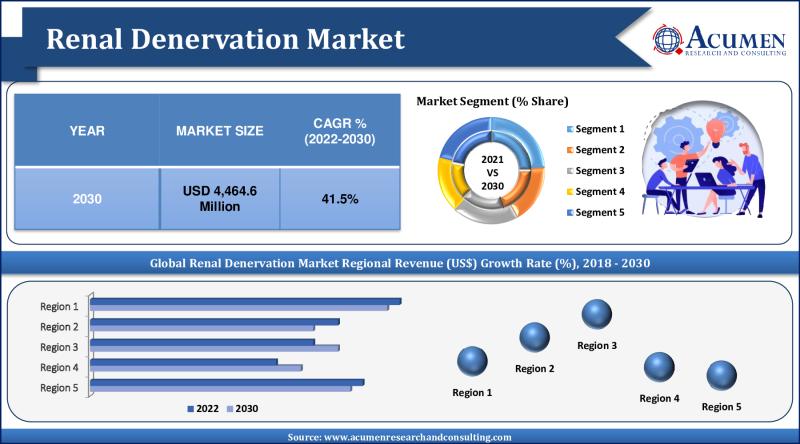 The global renal denervation market has been experiencing significant growth, driven by the increasing prevalence of hypertension and advancements in medical technology. According to recent market analysis, the global renal denervation market revenue is projected to reach USD 4,464.6 million by 2030, growing at an impressive compound annual growth rate (CAGR) of 41.5% from 2022 to 2030. This surge can be attributed to various factors, including the rising incidence of hypertension worldwide, technological advancements, and the increasing adoption of renal denervation procedures.REQUEST A $1000 DISCOUNT ON CREDIT CARD PURCHASE: https://www.acumenresearchandconsulting.com/inquiry-before-buying/992