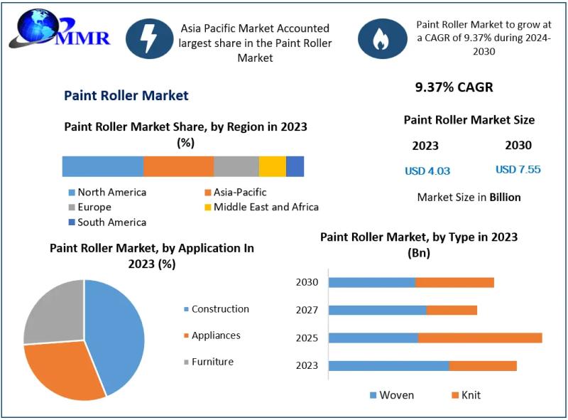 The Paint Roller Market was valued at USD 4.03 billion in 2023 and is projected to reach USD 7.55 billion by 2030, growing at a robust compound annual growth rate (CAGR) of 9.37% during the forecast period from 2024 to 2030, according to the latest industry analysis.